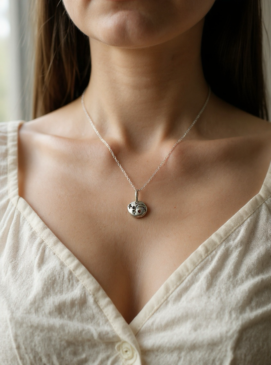 Handmade in sterling silver, each piece bears the touch of the maker’s hands—sawing, stamping, soldering, sanding—leaving behind small variations that make it uniquely yours. Wear it layered as a necklace or carry it as a charm, a talisman to remind you of your resilience, your strength, and the stars that guide your way.